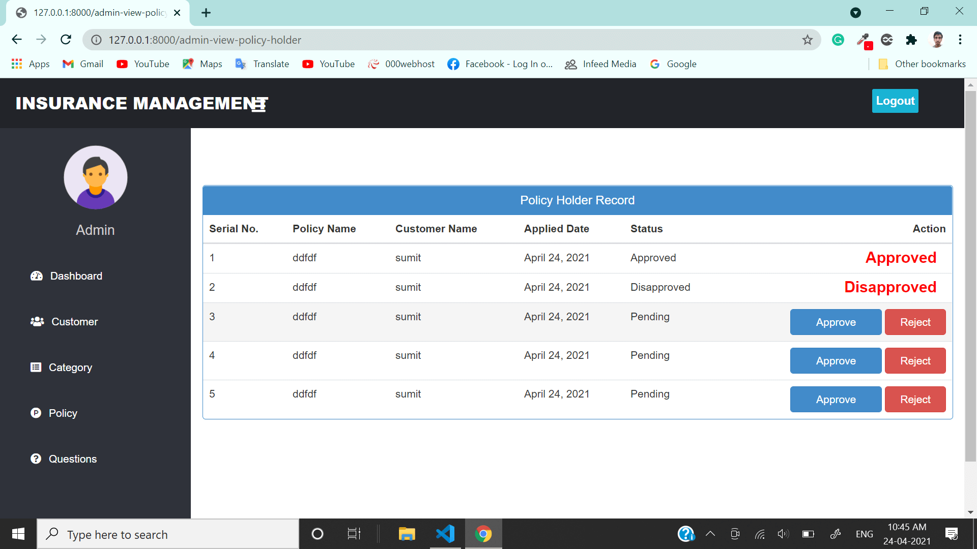 An organization may have difficulties that make managing insurance ineffective, leading to mistakes, discrepancies, and data loss. Spread sheet software is typically used by enterprises to record and administer insurance; however it is unsecure and can result in data breaches because anyone can easily change the data and record false information. Although it could be recorded on a software platform, the data wouldn’t be of long-term value. This ineffective technique of encoding, documenting, and monitoring insurance for a business or organization could have a number of negative effects. For this reason, the researchers came up with the idea of creating the capstone project. Because they lack the platform to readily check and monitor the state of their insurance, those who have insurance tend to not adequately monitor it.